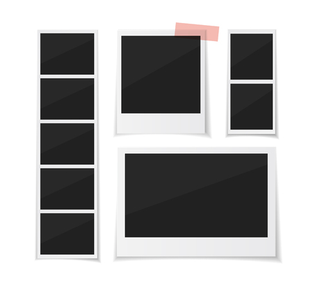 瞬間を収集します ベクトルのプリクラや写真を紙テープを付着を設定します 白い背景にレトロなインスタント写真の写真 のイラスト素材 ベクタ Image