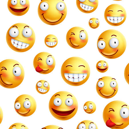 スマイルスの壁紙は 黄色のシームレスなベクター画像パターンで 幸せそうな顔と表情が連続しています ベクターイラスト のベクター画像素材 ロイヤリティフリー